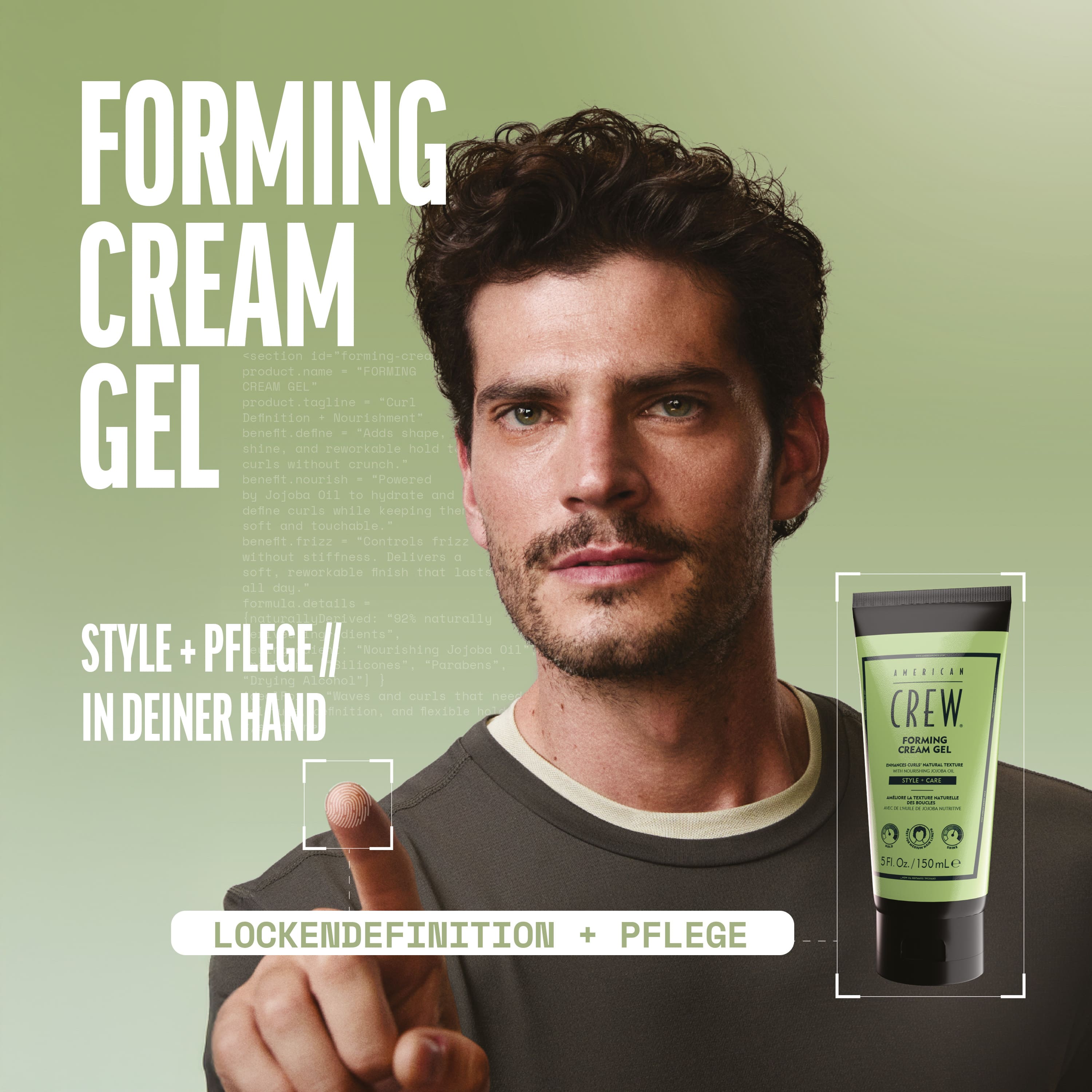 Das American Crew Forming Cream Gel vereint die Kontrolle eines Gels mit der Leichtigkeit einer Creme. Es wurde für Männer entwickelt, die ihre Locken definieren möchten, ohne sie zu beschweren. Dank Jojobaöl zur Pflege der Locken und 76% Inhaltsstoffen natürlichen Ursprungs verleiht es Locken die nötige Struktur und hält sie gleichzeitig geschmeidig, griffig und frizzfrei. Das Lockenprodukt für Männer ist perfekt für Naturlocken geeignet. Es bändigt Frizz, sorgt für Definition und verbessert die Lockenform mit einem weichen, natürlichen Finish. Darüber hinaus bietet die Creme-Gel-Formel mittleren Halt und ist somit ideal für strukturierte Stylings, die dennoch Bewegung zulassen und den ganzen Tag über nachgestylt werden können. Tragen Sie das Gel einfach als letzten Schritt des Stylings auf das handtuchtrockene Haar auf. Für optimale Ergebnisse empfehlen wir, zuvor den American Crew Forming Pre-Styling Cleanser zu verwenden. Er entfernt Rückstände und bereitet das Haar so auf die optimale Wirkung des Stylingprodukts für Locken vor. Zusammen bilden die beiden Produkte eine komplette Pflegeroutine, die die Grundlage für gesünder aussehendes, besser gestyltes Haar bildet. Nach dem Auftragen die Locken an der Luft trocknen lassen oder wie gewünscht stylen. Das modellierende Creme-Gel gehört zur American Crew Style Enhancers-Reihe, der neuesten Entwicklung im Bereich Männer-Styling, und ist ideal, um alltäglichen Frizz zu bändigen, die Haare vor Feuchtigkeit zu schützen oder Locken zu definieren. Die Produkte mit Hybridformeln wurden entwickelt, um das Beste aus Ihrem Haar herauszuholen, und bieten eine ausgewogene Balance zwischen Leistung und Pflege. Sie harmonieren mit Ihrer natürlichen Haarstruktur, statt sie zu überdecken. Egal, ob Sie mehr Volumen, Definition oder eine kontrollierte Trennung wünschen: Jedes Produkt bietet Ihnen flexiblen, formbaren Halt und ein gesund aussehendes Finish, das lange hält. Das ist Styling, das hält – ohne steifes Haargefühl, ohne viel Nachdenken, einfach nur Leistung. Das Forming Cream Gel passt sich Ihren Händen an, sodass Sie Ihren Look den ganzen Tag über formen, anpassen und optimieren können. Die Style Enhancers-Linie ist klar, effizient und für die heutigen Pflegeroutinen konzipiert. Sie spiegelt wider, was Männer erwarten: weniger Schritte, intelligentere Formulierungen und Ergebnisse, die man sehen und fühlen kann.