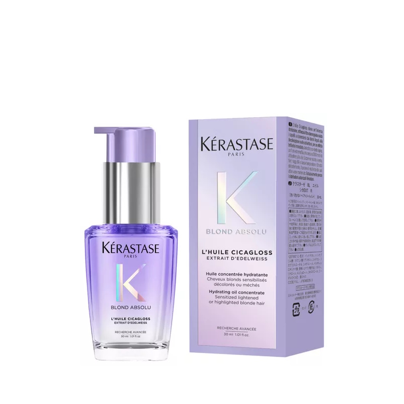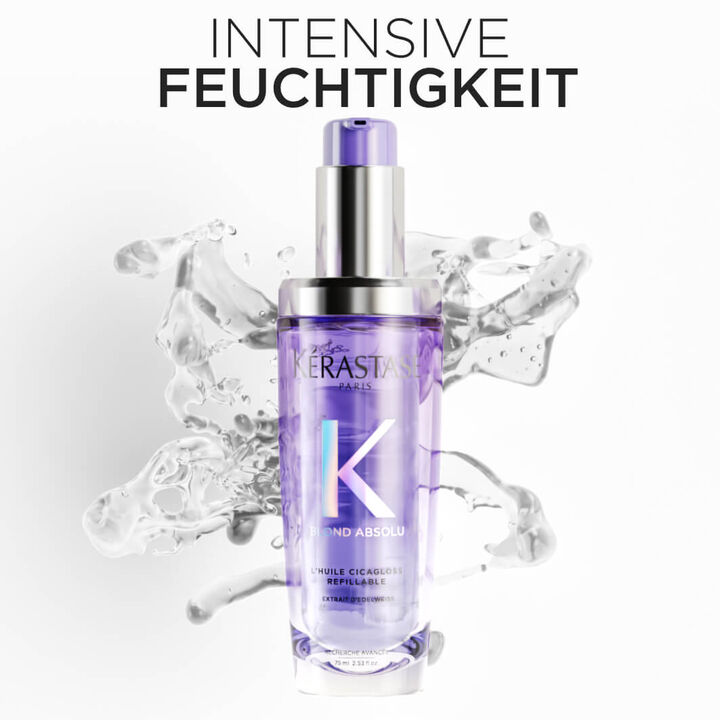 Das nachfüllbare Haaröl L'Huile Cicagloss spendet tiefenwirksame Feuchtigkeit, stärkt die geschwächte Haarfaser und baut das Haar nach Schäden durch Blondieren oder Aufhellen wieder auf - für sofortigen Glanz.