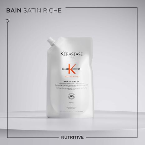 Haarbad Das Shampoo Bain Satin Riche aus der Linie Nutritive von Kérastase ist ein außerordentlich feuchtigkeitsspendendes Shampoo für sehr trockenes Haar. Es enthält Anti-Trockenheits-Polymere für intensive Nährstoffversorgung und Kräftigung des Haars. Die essenziellen Nährstoffe, die es enthält, nähren und kräftigen trockenes Haar und sorgen für ein schwereloses Ergebnis.