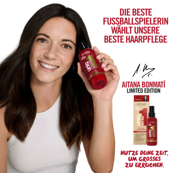 Aitana Bonmatí, die beste Fußballspielerin der Welt, ist die neue globale Markenbotschafterin für unsere UniqOne Haarpflege. Die beste Fußballspielerin wählt unsere beste Haarpflege!