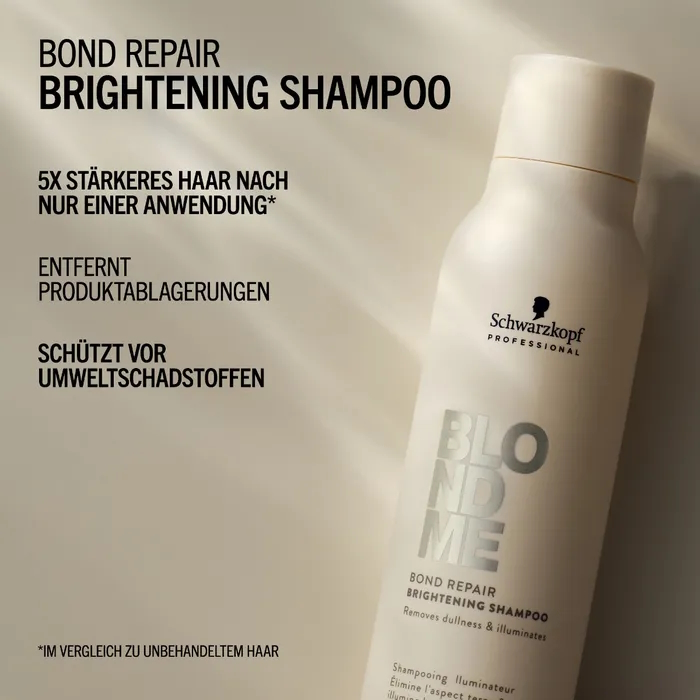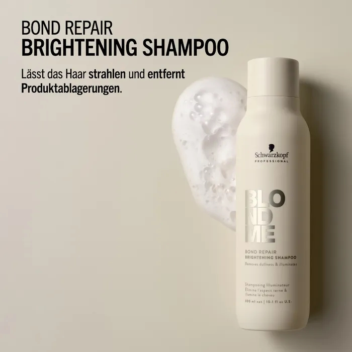 Das BLONDME Bond Repair Brightening Shampoo mit der BOND REPAIR TECHNOLOGIE reinigt blondes Haar und hellt es optisch auf, indem es Produktablagerungen, Unreinheiten und Umweltschadstoffe entfernt. Es hilft, die inneren Haarverbindungen aufzubauen und repariert Haarschäden, die zwei Aufhellungsservices entsprechen - bereits nach nur einer Anwendung. . Die leichte und feuchtigkeitsspendende Formel, angereichert mit Mandelöl und weißem Tee, verleiht dem Haar Geschmeidigkeit und einen gesund aussehenden Glanz.