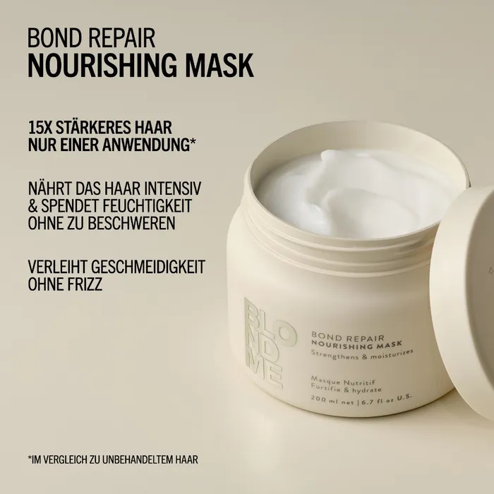 Die BLONDME Bond Repair Nourishing Mask erfüllt die Bedürfnisse derjenigen, die Haarbruch bekämpfen und ihr blondes Haar intensiv pflegen möchten, ohne es zu beschweren.