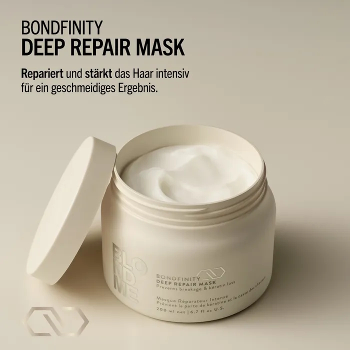 Die BLONDME Bondfinity Deep Repair Mask erfüllt die Bedürfnisse derjenigen, die ihr blondes oder aufgehelltes Haar intensiv pflegen, reparieren und stärken möchten, ohne es zu beschweren.