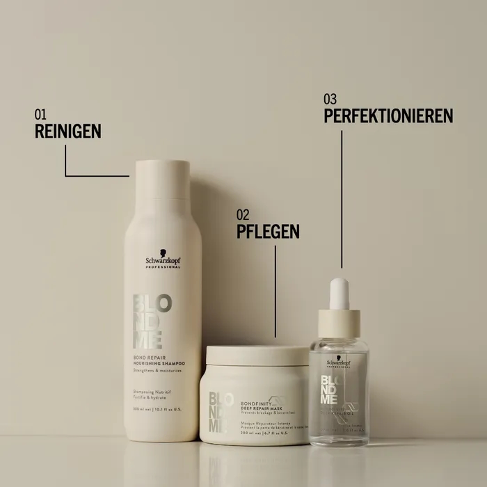 BLONDME Care ist für Kund:innen mit blondem oder aufgehelltem Haar, die ein professionelles Haarpflegeprodukt benötigen, das ihr Haar schützt und stärkt.