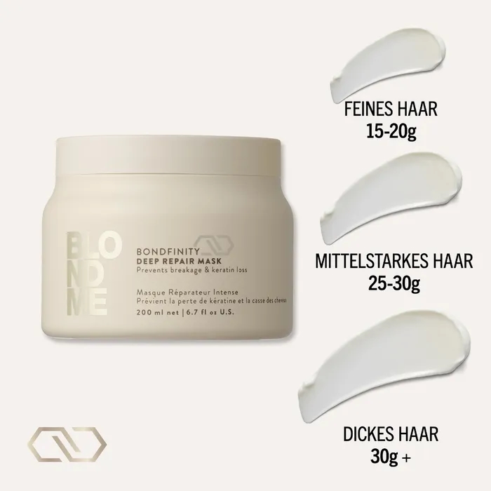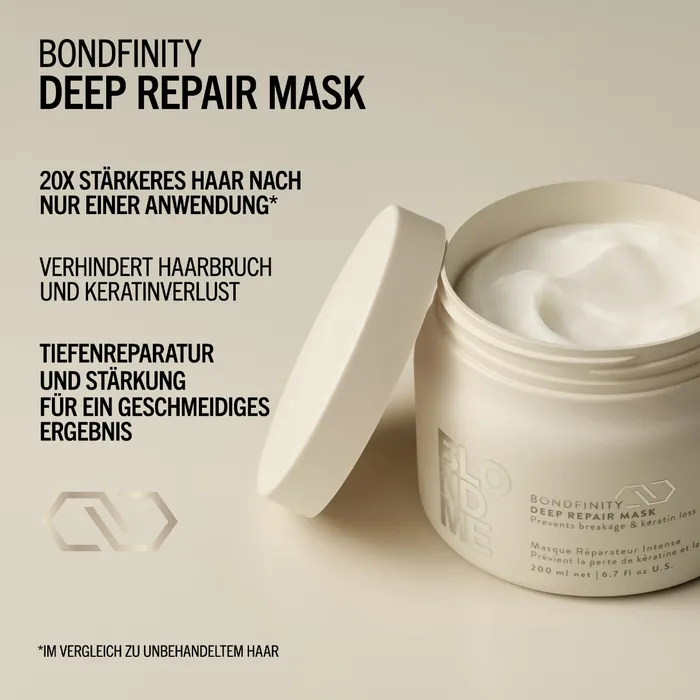 Die BLONDME Deep Repair Mask mit der BONDFINITY TECHNOLOGIE repariert und stärkt blondes und aufgehelltes Haar tiefgreifend, ohne es zu beschweren. Sie stellt die Gesundheit des Haares wieder her, indem sie dauerhafte Haarverbindungen schafft und das haareigene Keratin einschließt - eine proaktive, dauerhafte Reparatur für das Haar, das nach nur einer Anwendung 20-mal stärker ist*.