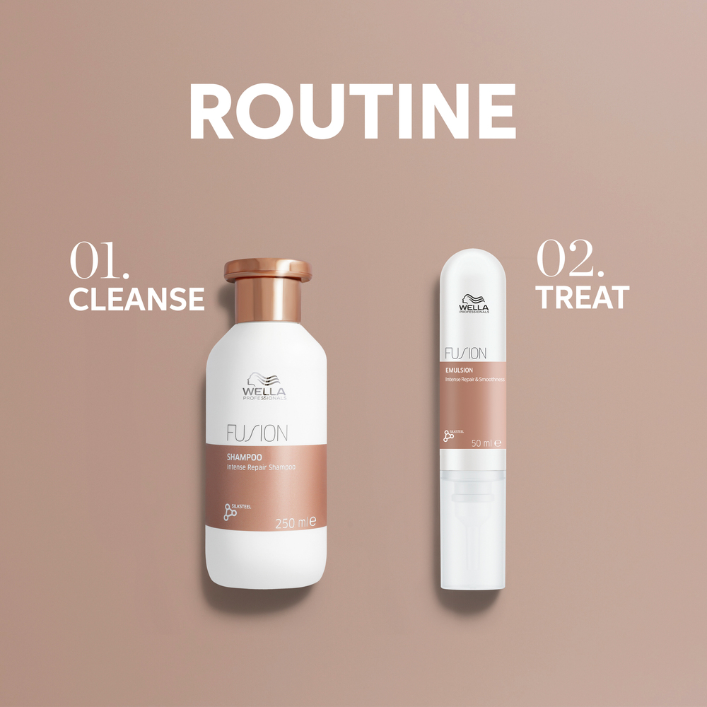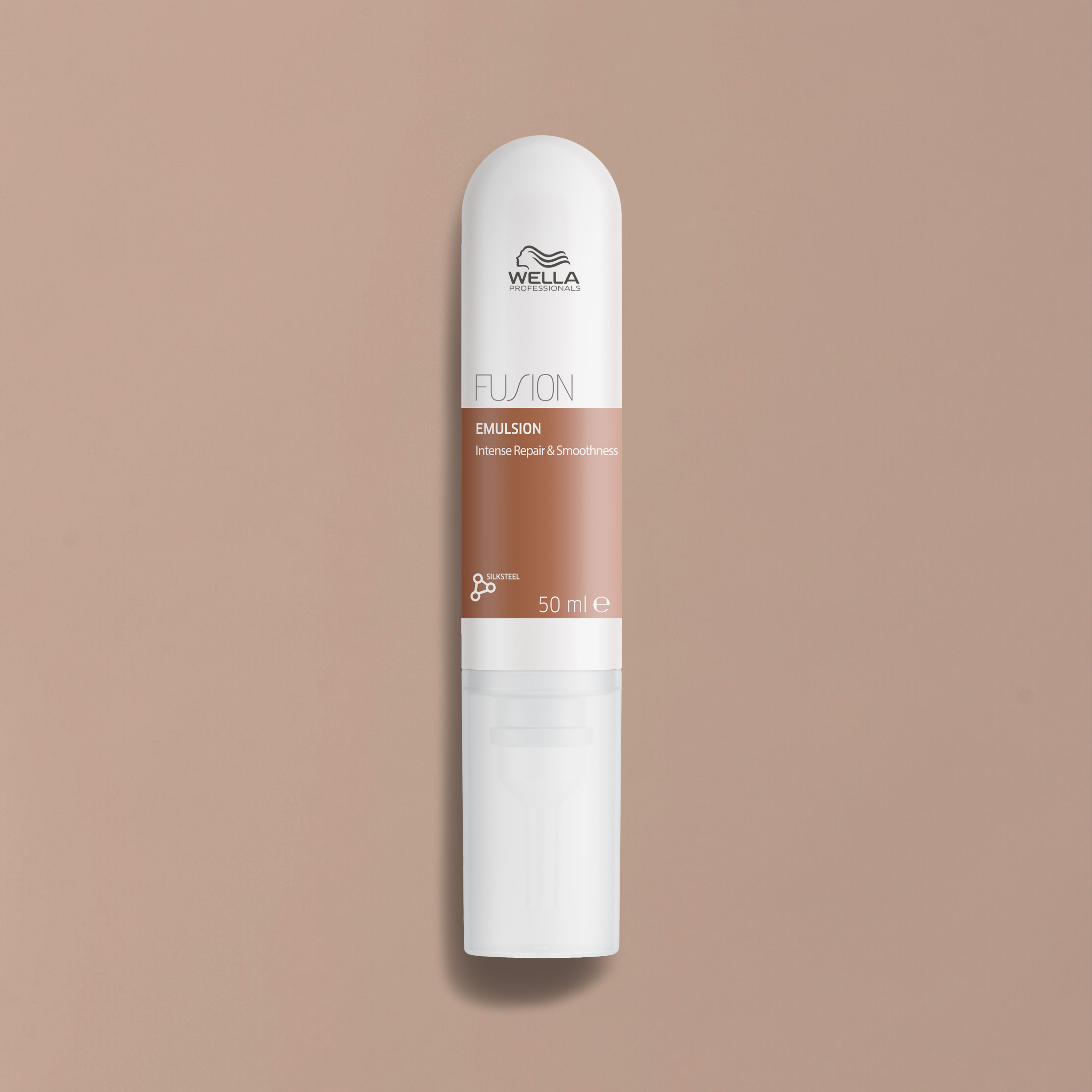 Fusion Emulsion von Wella. Eine verwöhnende Mousse-Formulierung, die mit dem Haar verschmilzt und tief ins Haar eindringt, für sofortige transformative Ergebnisse. Schützt, nährt und repariert sofort die geschädigte Haarstruktur und reduziert Haarbruch. Hilft die Oxidation zu stoppen und neutralisiert den pH-Wert. Dringt tief in die Haarfaser ein, repariert geschädigte Stellen und stärkt das Haar durch Aminosäuren.